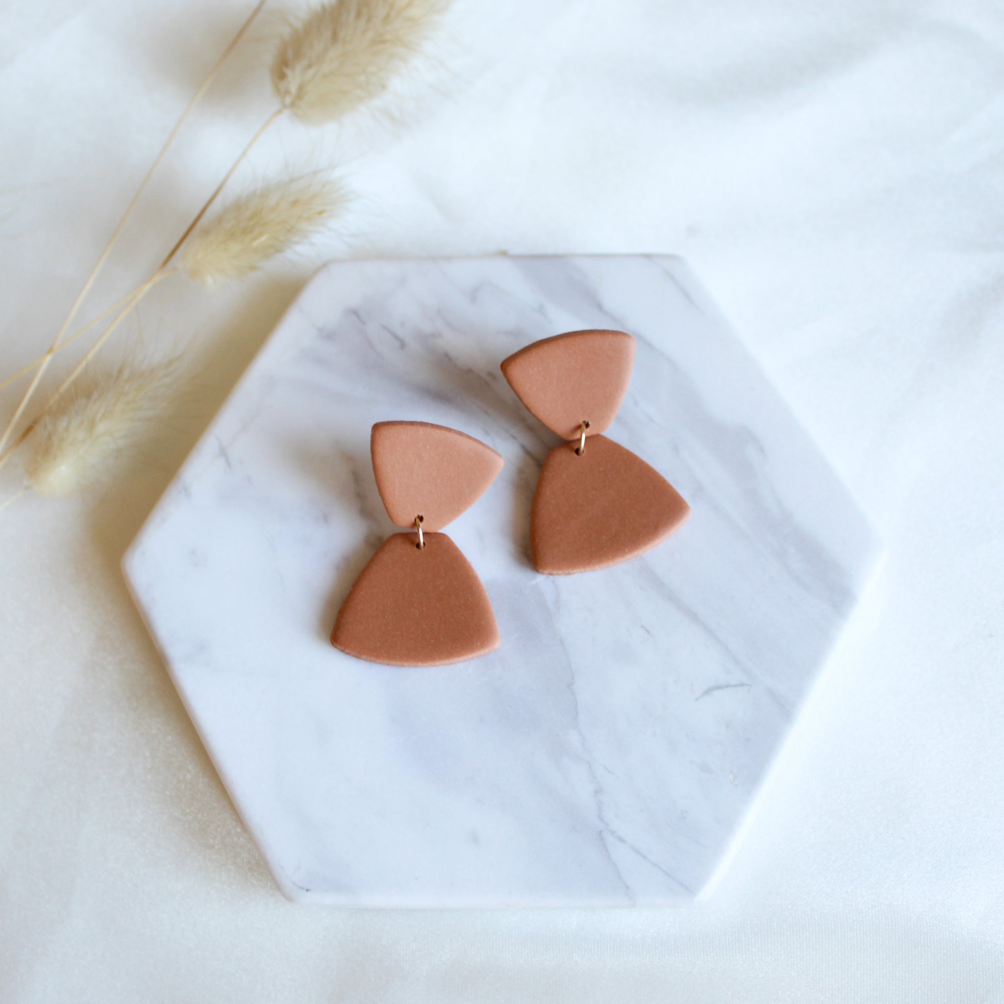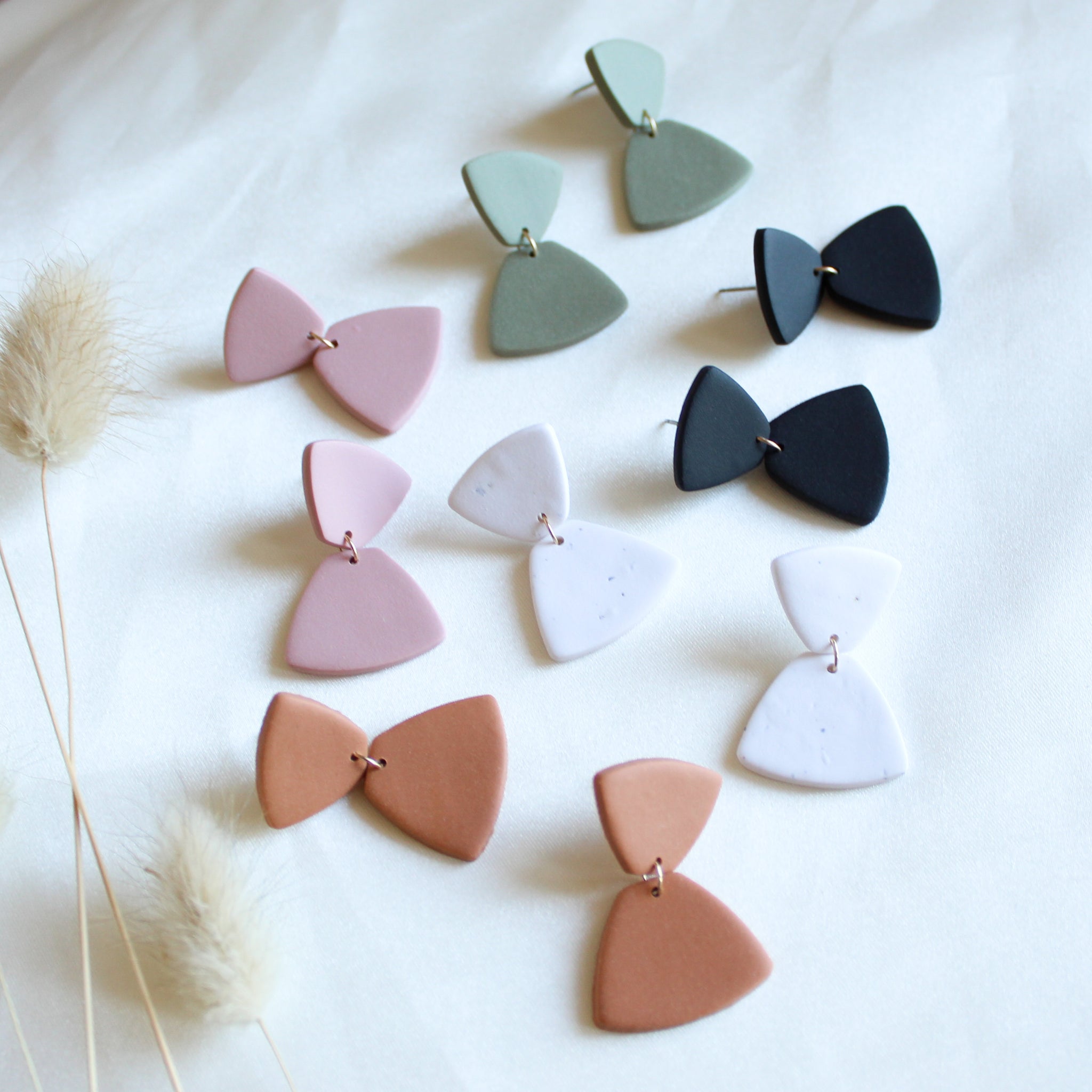 Polymer clay earrings take HOURS to create from color mixing, cutting, baking, sanding, drilling, and assembling. Even after that, there is still photography, listing, packaging, and bringing to the post office. It brings me so much joy watching each piece come to life through this process and I hope you enjoy wearing your earrings knowing that I put my heart & soul into each pair.