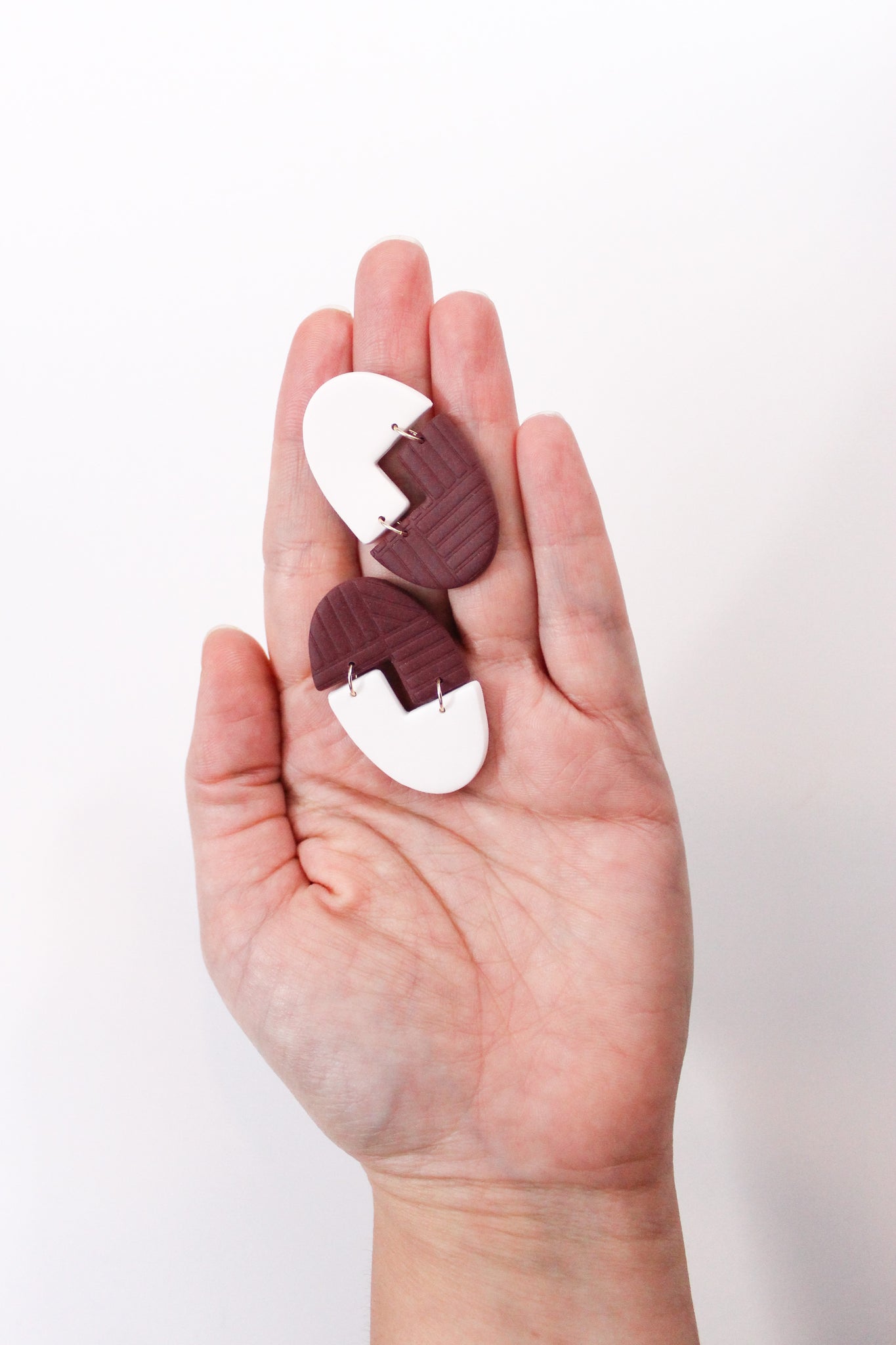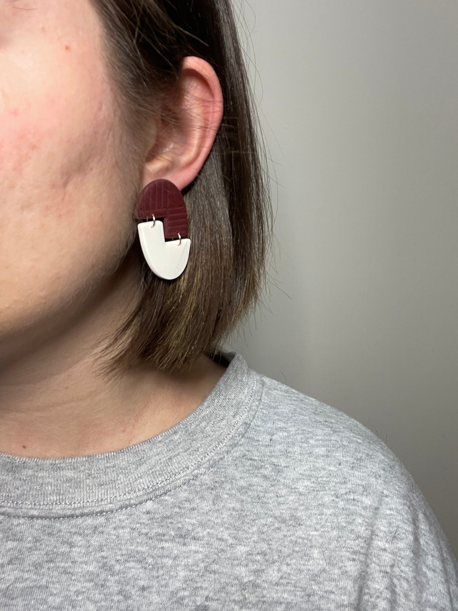 How fun are these earrings! Between the fun Tetris shape, to the added texture and can’t forgot that gorgeous oxblood color! I love these so much!