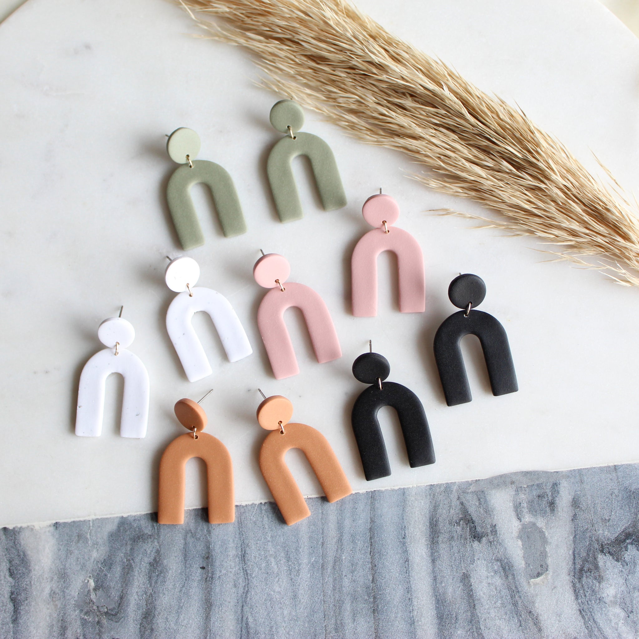 Polymer clay earrings take HOURS to create from color mixing, cutting, baking, sanding, drilling, and assembling. Even after that, there is still photography, listing, packaging, and bringing to the post office. It brings me so much joy watching each piece come to life through this process and I hope you enjoy wearing your earrings knowing that I put my heart & soul into each pair.