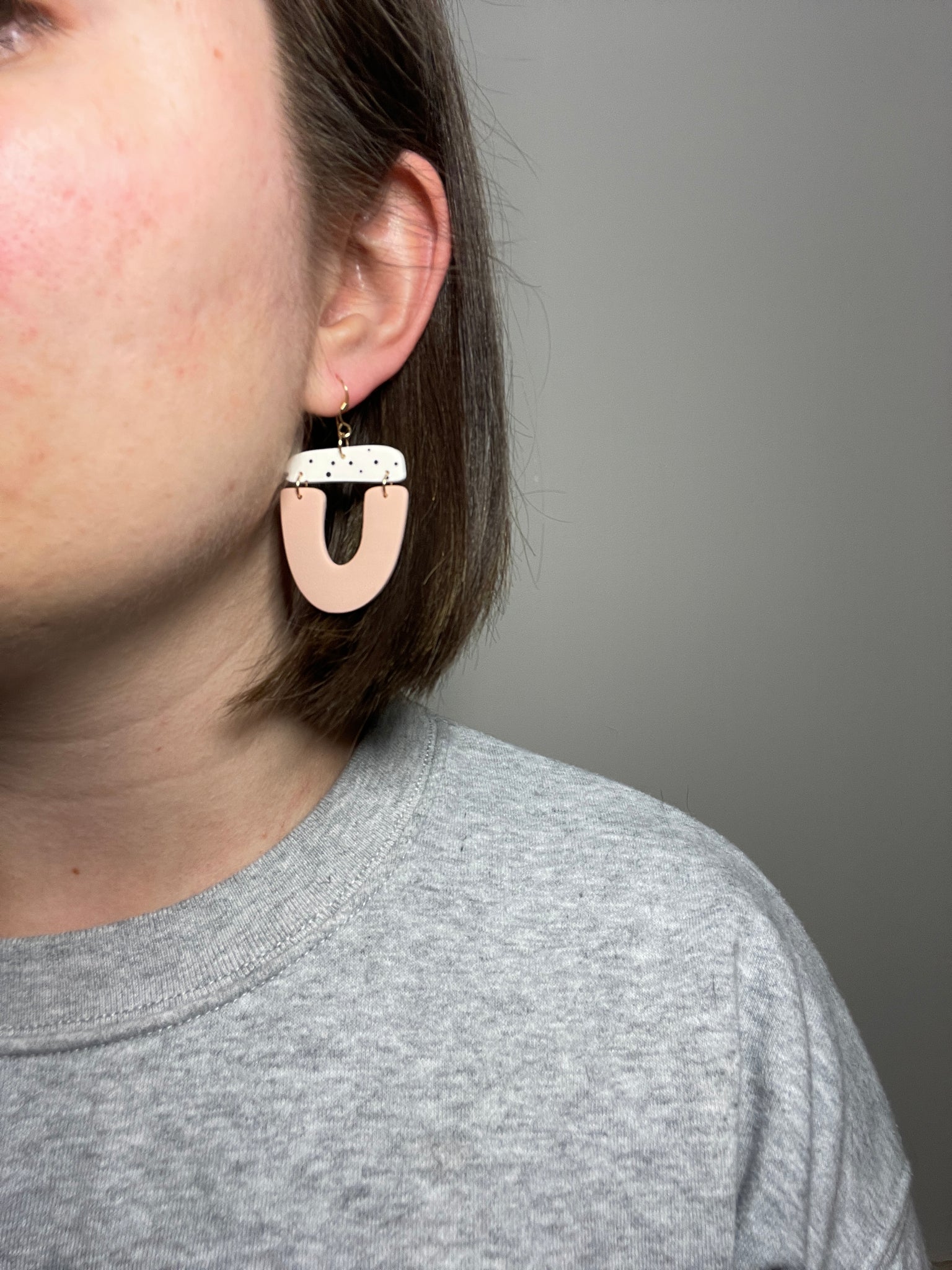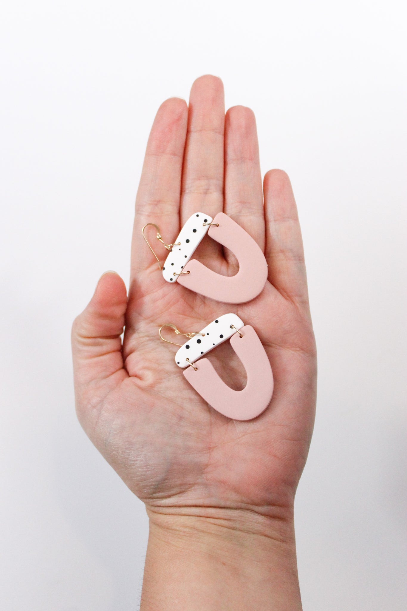 Polka dots are always fun to wear! And paired with the soft dusty pink they’re a perfect match. The hook posts allow it to have that extra swing too!